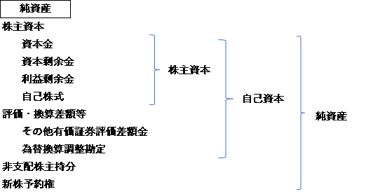 純資産=自己資本額+新株予約権+非支配株主持分